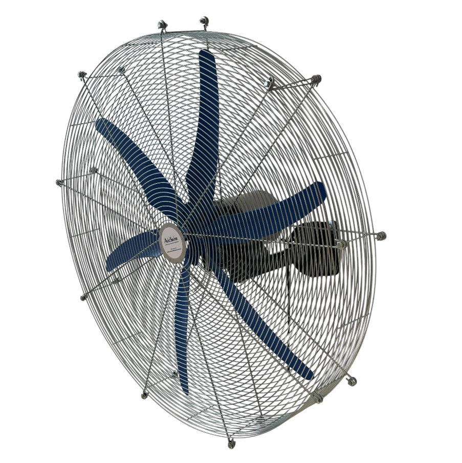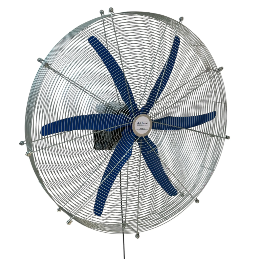Ventilador industrial de 1 metro com fixação em parede, projetado para oferecer ventilação eficiente em ambientes exigentes. Proporciona conforto térmico, melhor qualidade do ar e alta durabilidade, sendo ideal para indústrias, galpões, aviários, olarias e marmorarias.